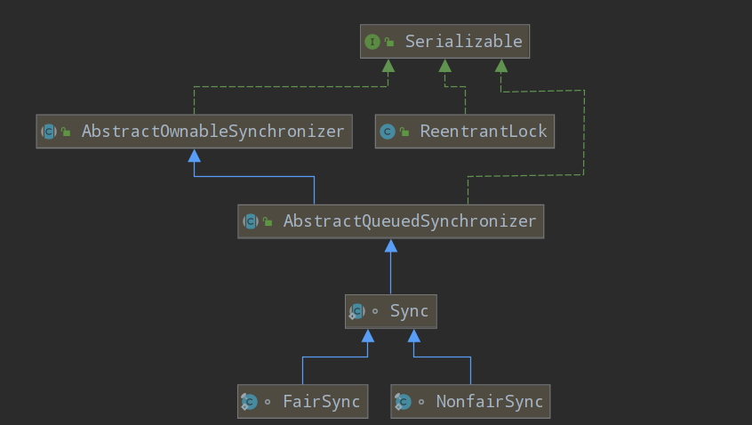 implements java.io.Serializable {从上面源码可以看出AbstractQueuedSynchronizer继承AbstractOwnableSynchronizer,也就是AQS继承AOS(后面都用AQS代表AbstractQueuedSynchronizer,AOS代表AbstractOwnableSynchronizer),我们再看看还没分析的NofairSync;