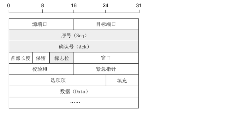 ③标志位:每个标志位占用1Bit,共有6个,分别为 URG、ACK、PSH、RST、SYN、FIN,具体含义如下: