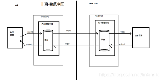 非直接缓冲区:通过 allocate() 方法分配缓冲区,将缓冲区建立在 JVM 的内存中