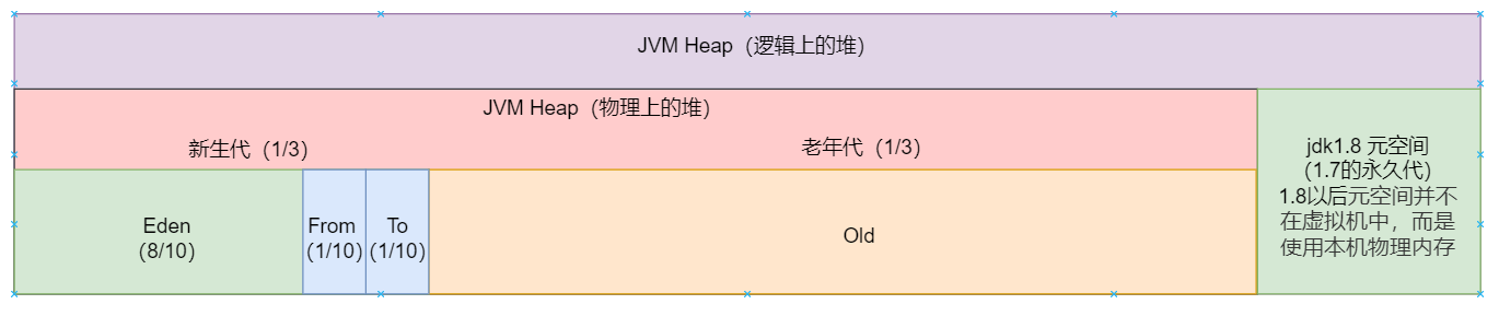 - 一般可以通过-Xms -Xmx限定其最小、最大值,我们通常把最大、最小设置为相同的值