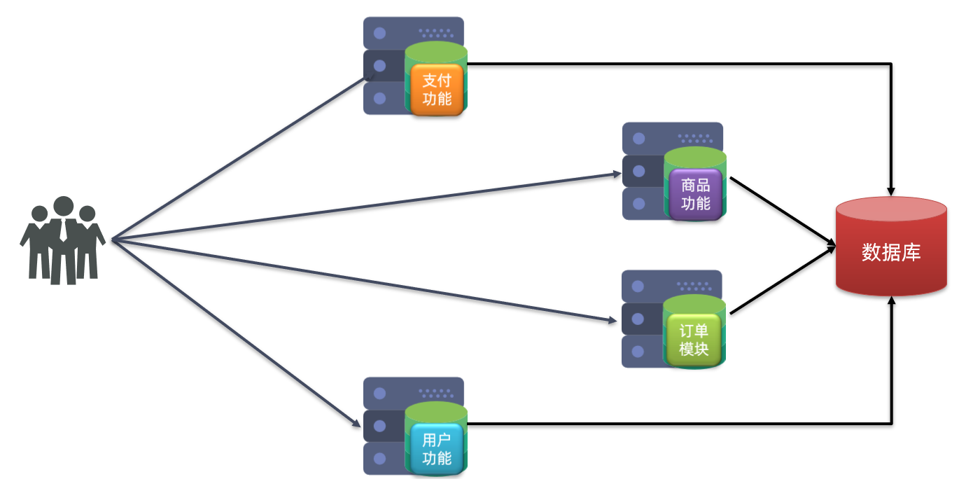 分布式架构:根据业务功能对系统做拆分,每个业务功能模块作为独立项目开发,称为一个服务。