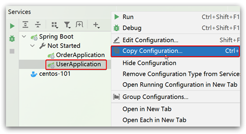 我们再次复制一个user-service启动配置,添加属性: