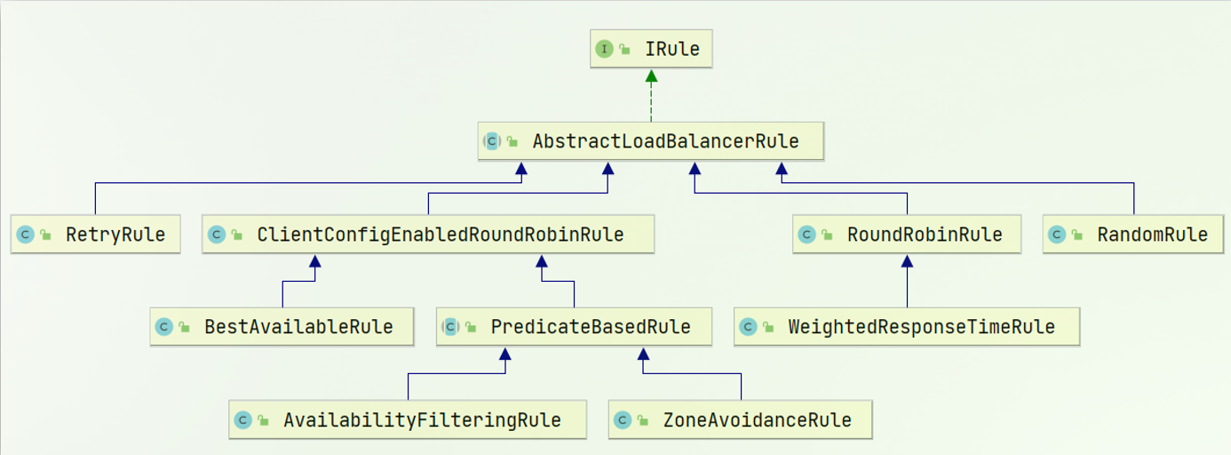 | RandomRule | 随机选择一个可用的服务器。 |