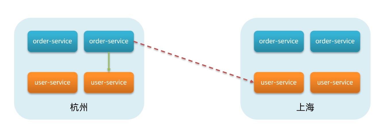 杭州机房内的order-service应该优先访问同机房的user-service。