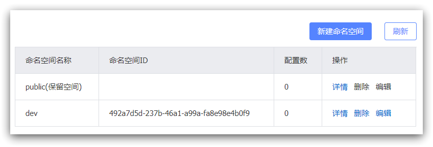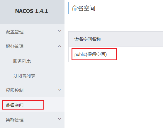 默认情况下,所有service、data、group都在同一个namespace,名为public: