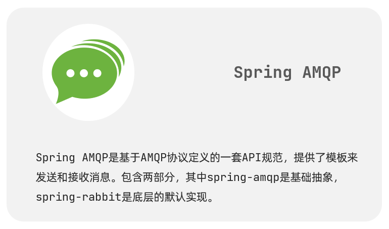 3.SpringAMQP SpringAMQP是基于RabbitMQ封装的一套模板,并且还利用SpringBoot对其实现了自动装配,使用起来非常方便。