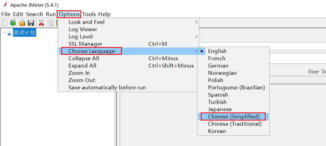 注意:上面的配置只能保证本次运行是中文,如果要永久中文,需要修改Jmeter的配置文件